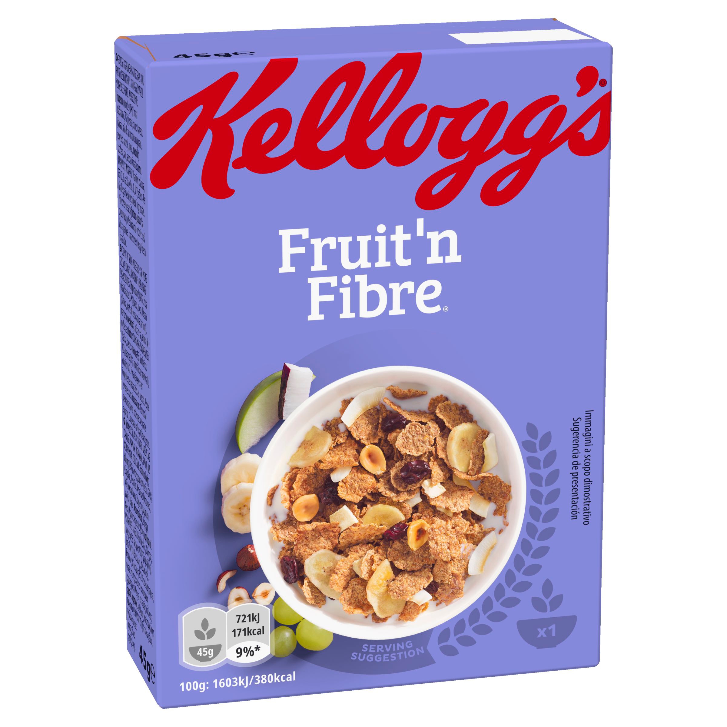 - Kellogg's Fruit 'n Fibre breakfast cereal contains superior wheat bran fibre*