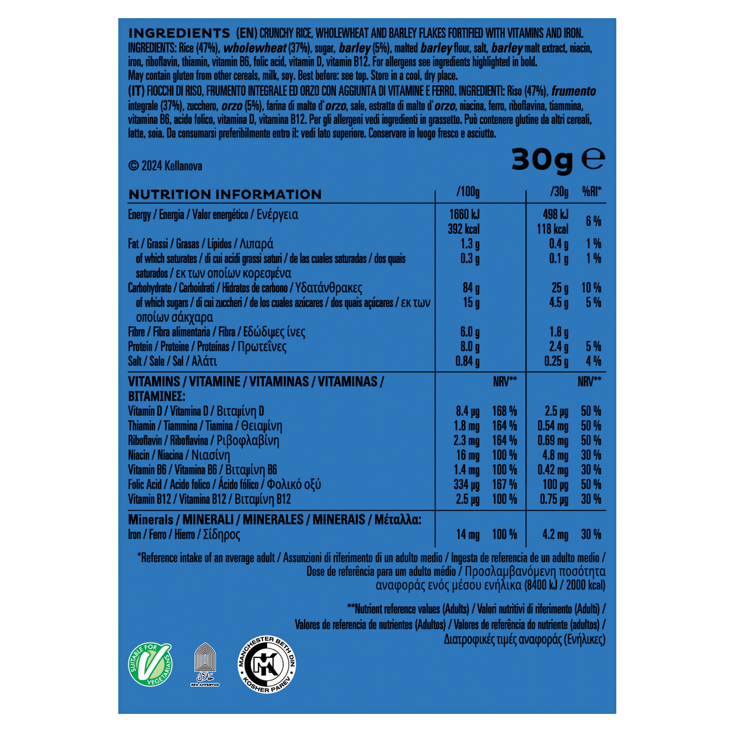 Vegetarians,Halal,Kosher Pareveper 100g | (%RI*) | per 30g | (%RI*) | |