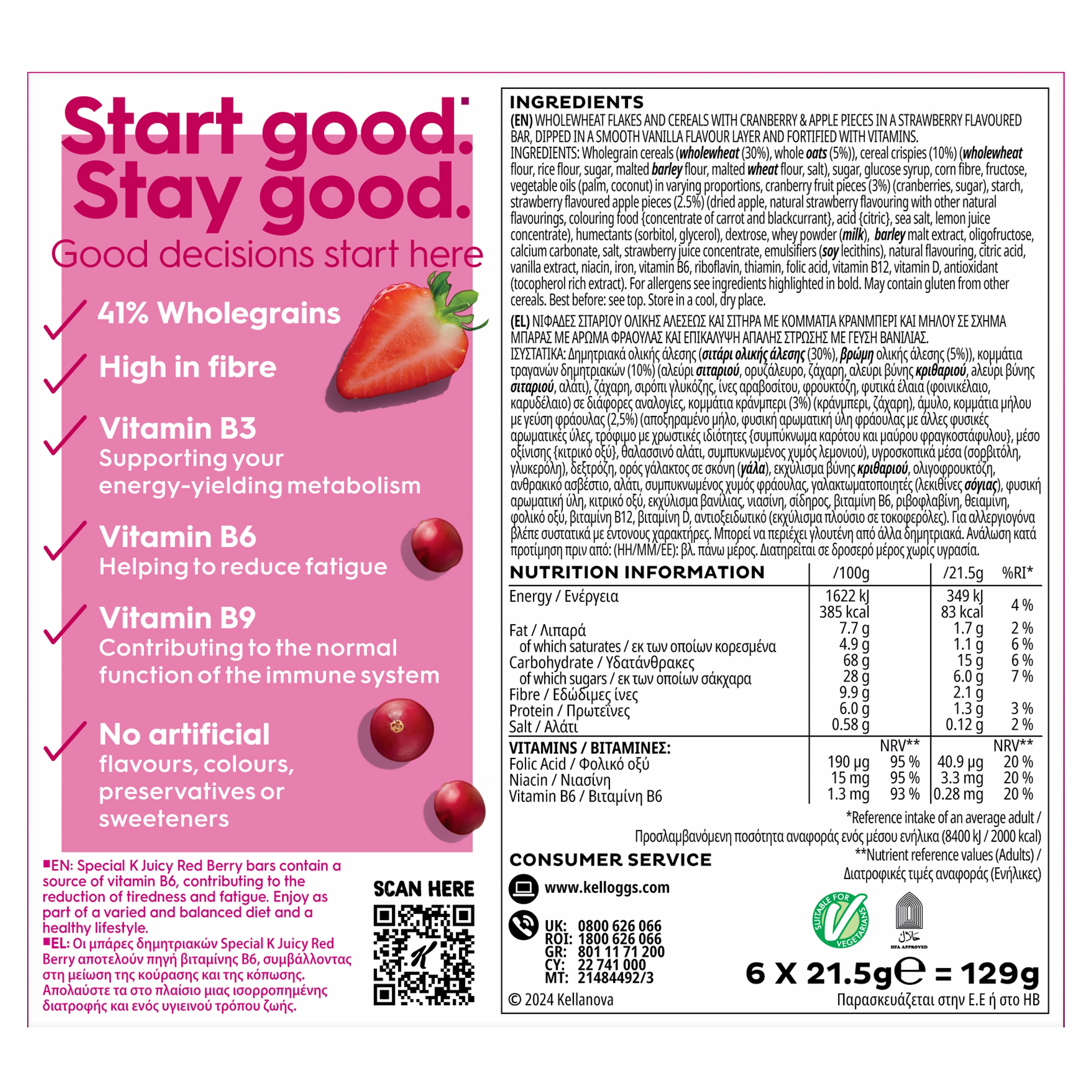 Kellogg's Special K Juicy Red Berry Snack Bars, 6x21.5g