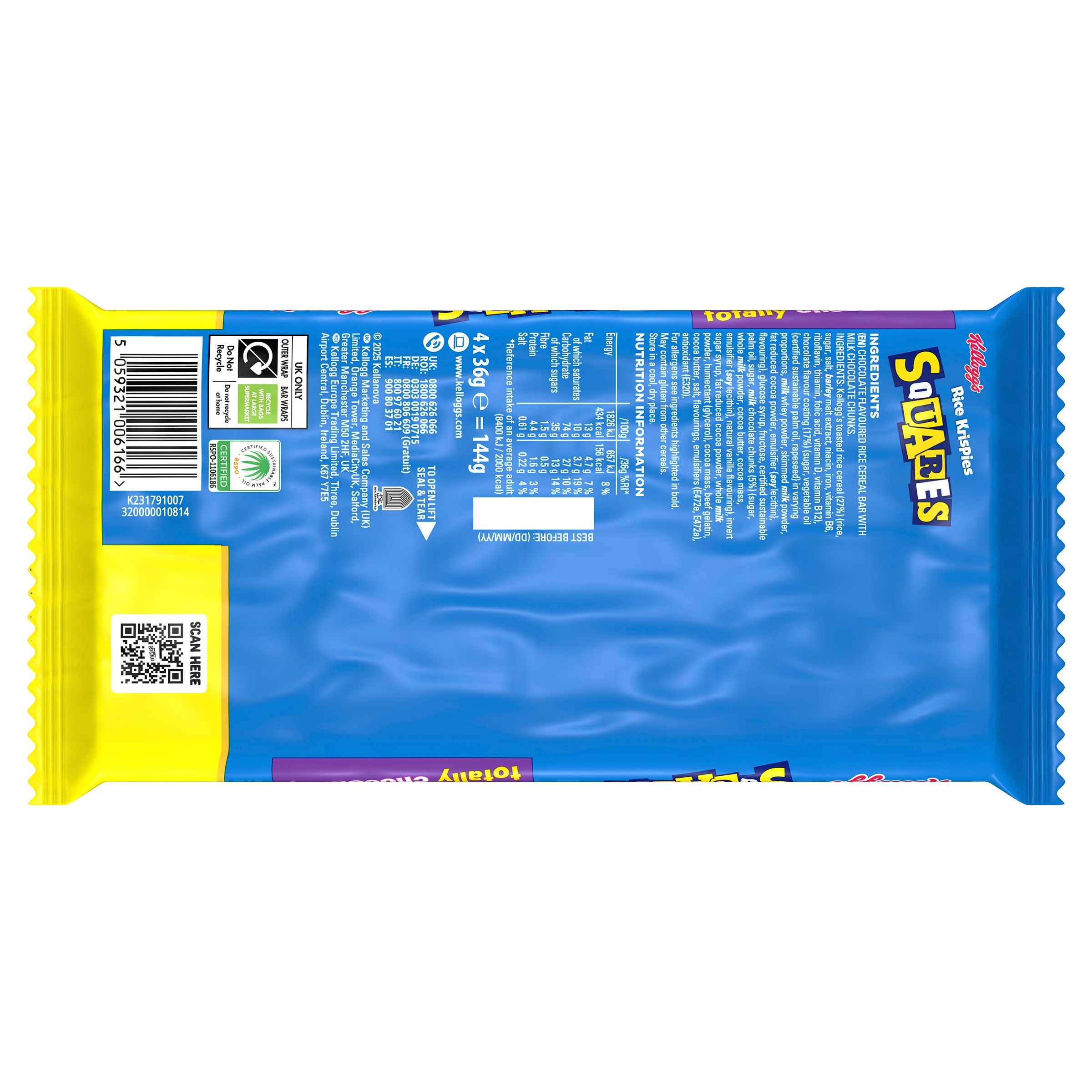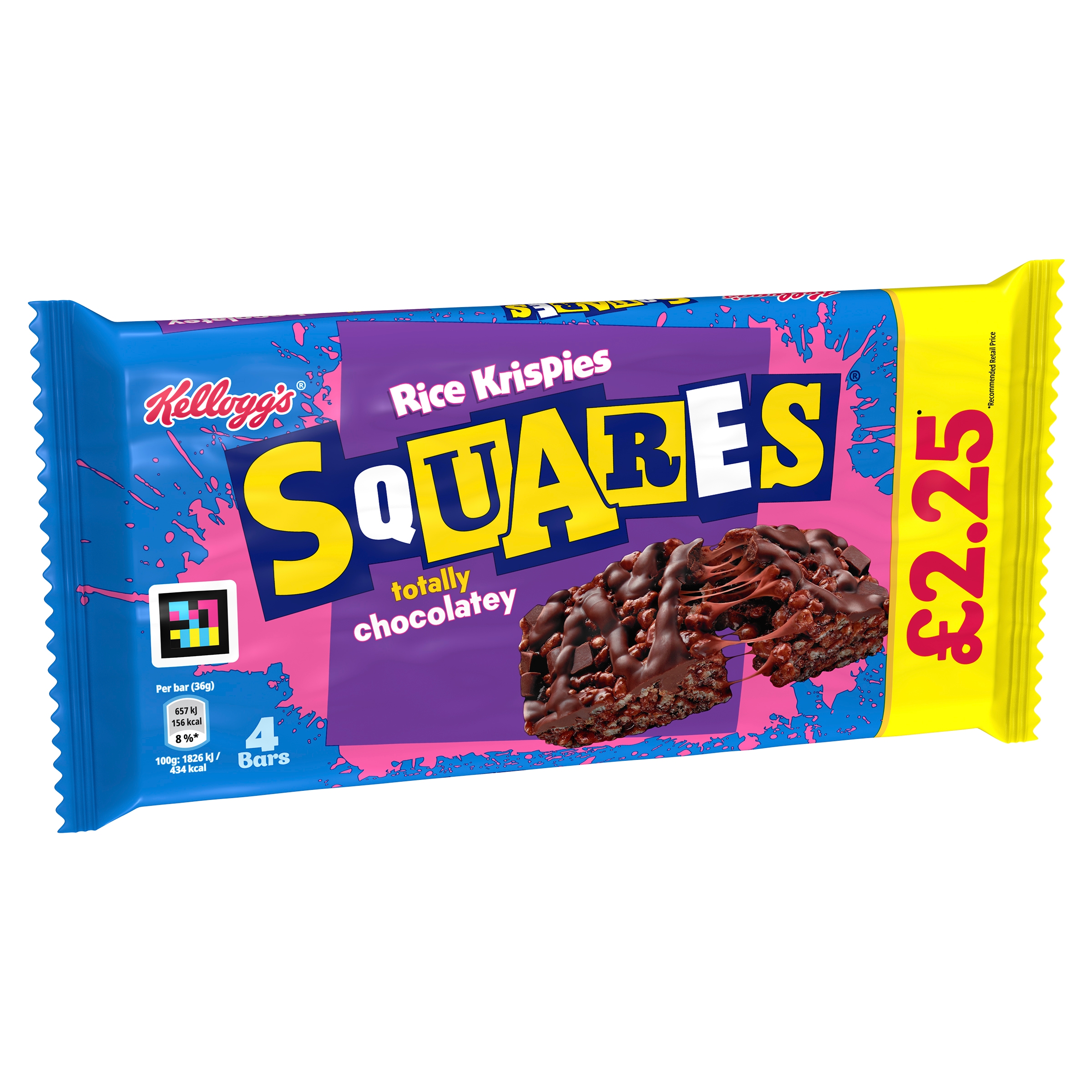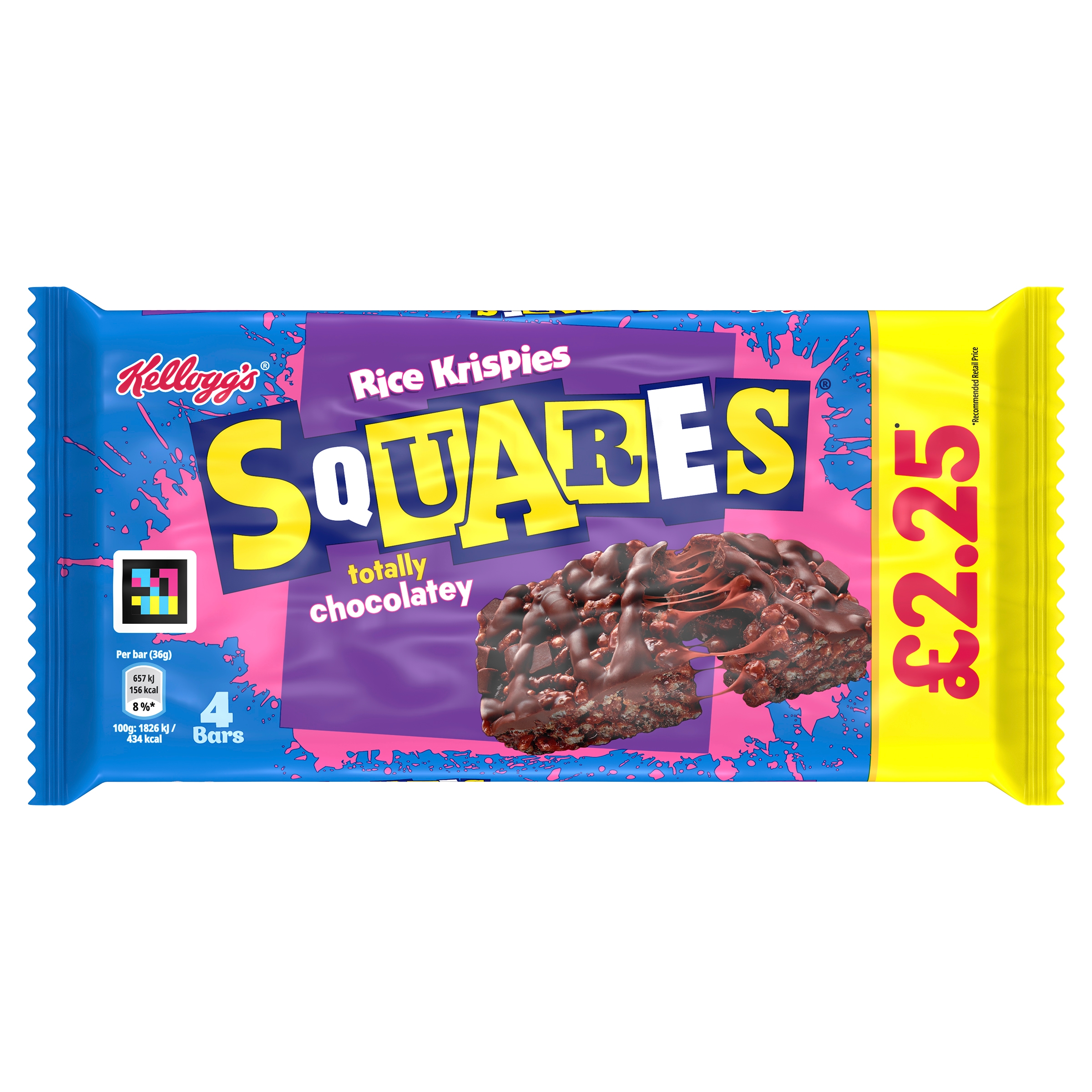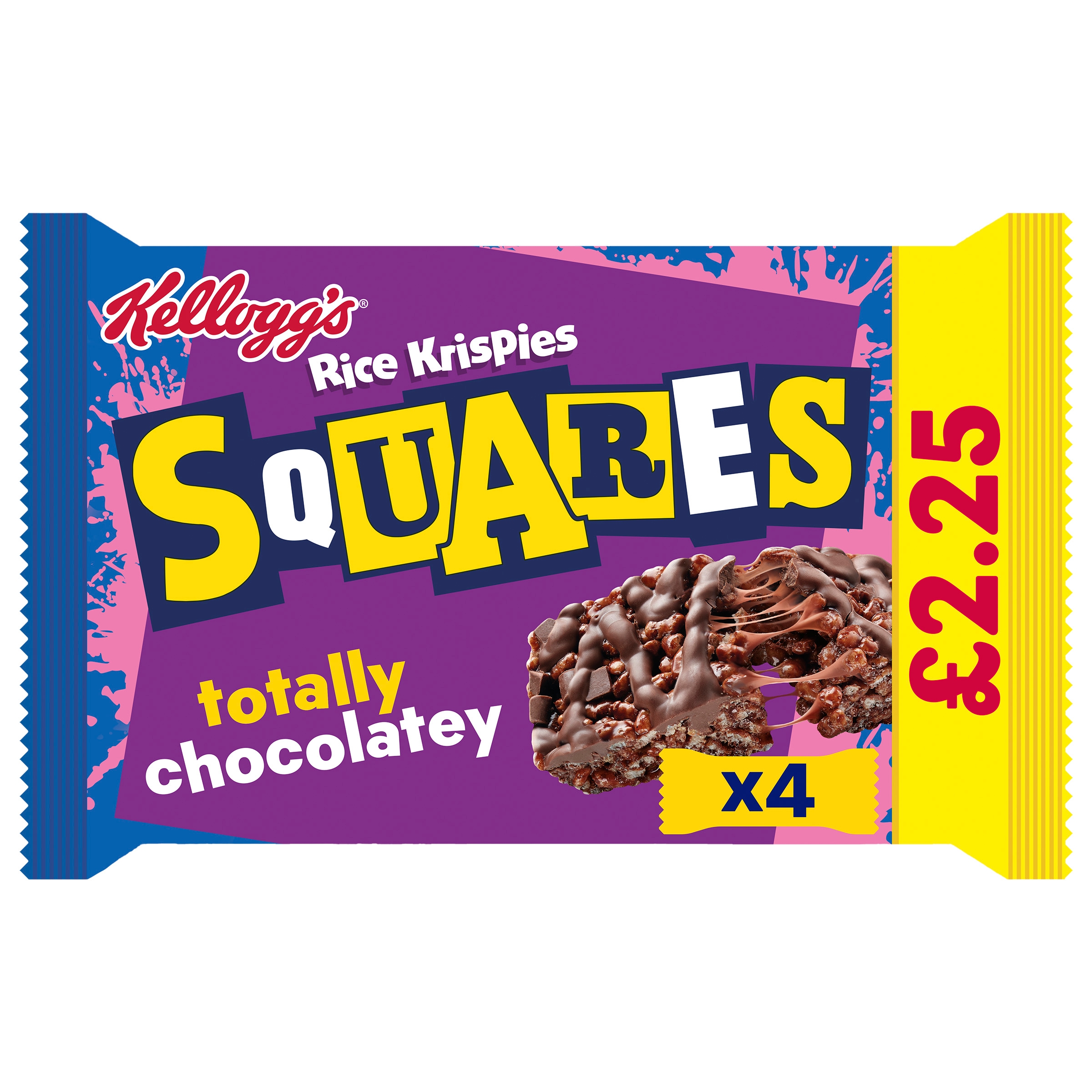 - Kellogg's Rice Krispies Squares Delightfully Chocolatey snack bars contain 4 bars per pack